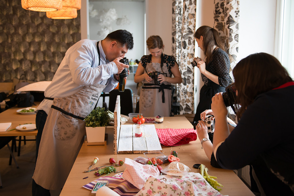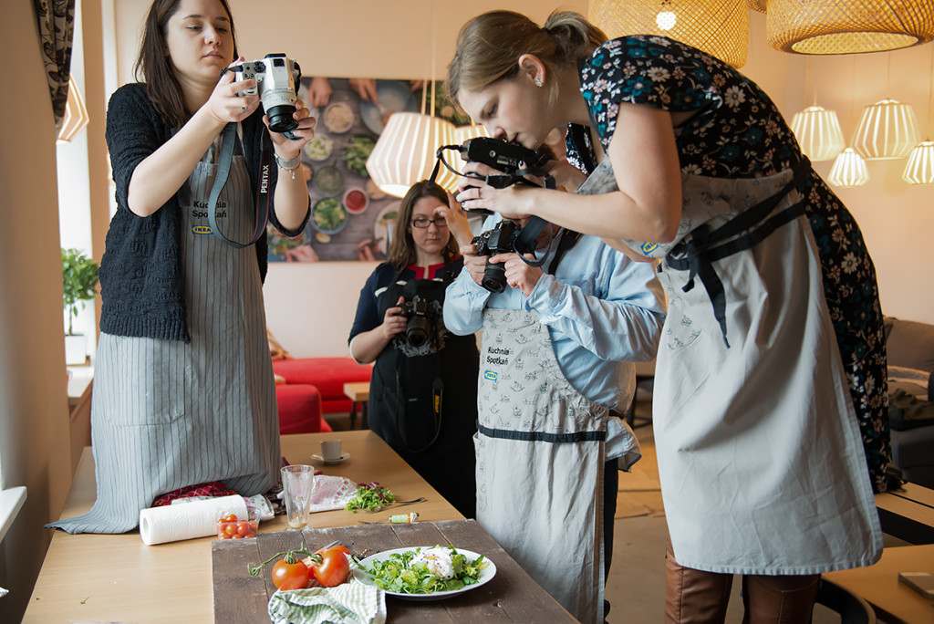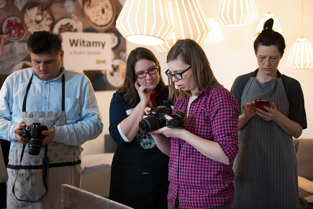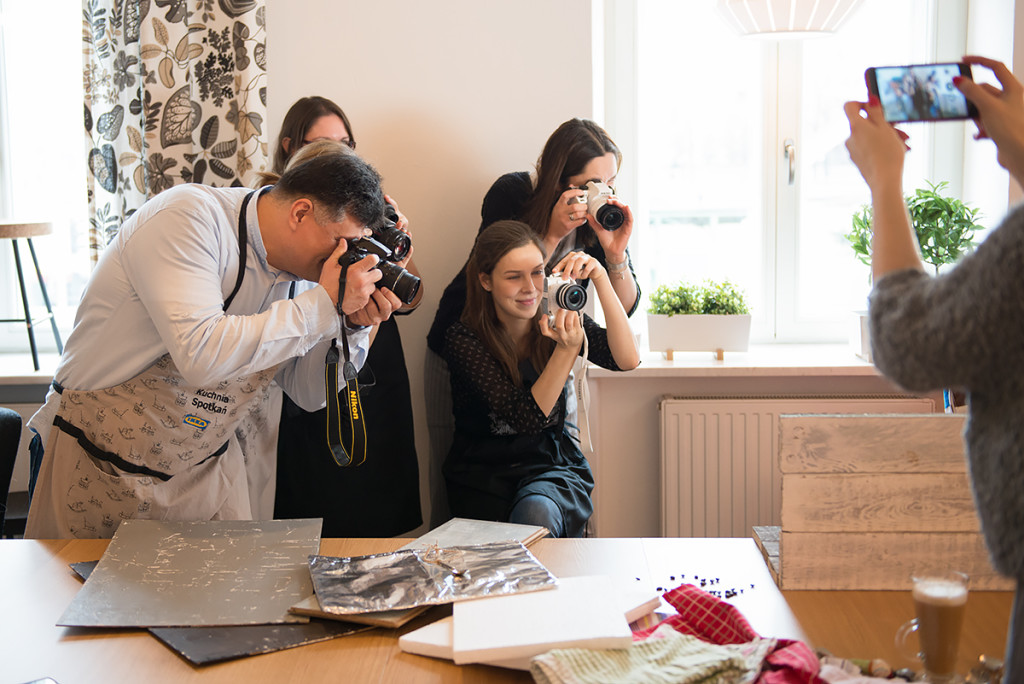 Mama Trójki przygotowała dla nas fajne i łatwe przepisy, ale o tym co przygotowała przeczytacie pewnie u niej na blogu. Ja natomiast zajęłam się pomocą fotograficzną, pomagałam zrozumieć podstawy fotografii kulinarnej. Zgłębialiśmy kwestię oświetlenia, kompozycji, balansu bieli, stylizacji potraw, a także opowiadałam o akcesoriach do fotografii kulinarnej. Jednym słowem skondensowałam w kilku godzinach to co istotne w fotografii kulinarnej.