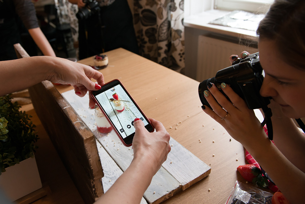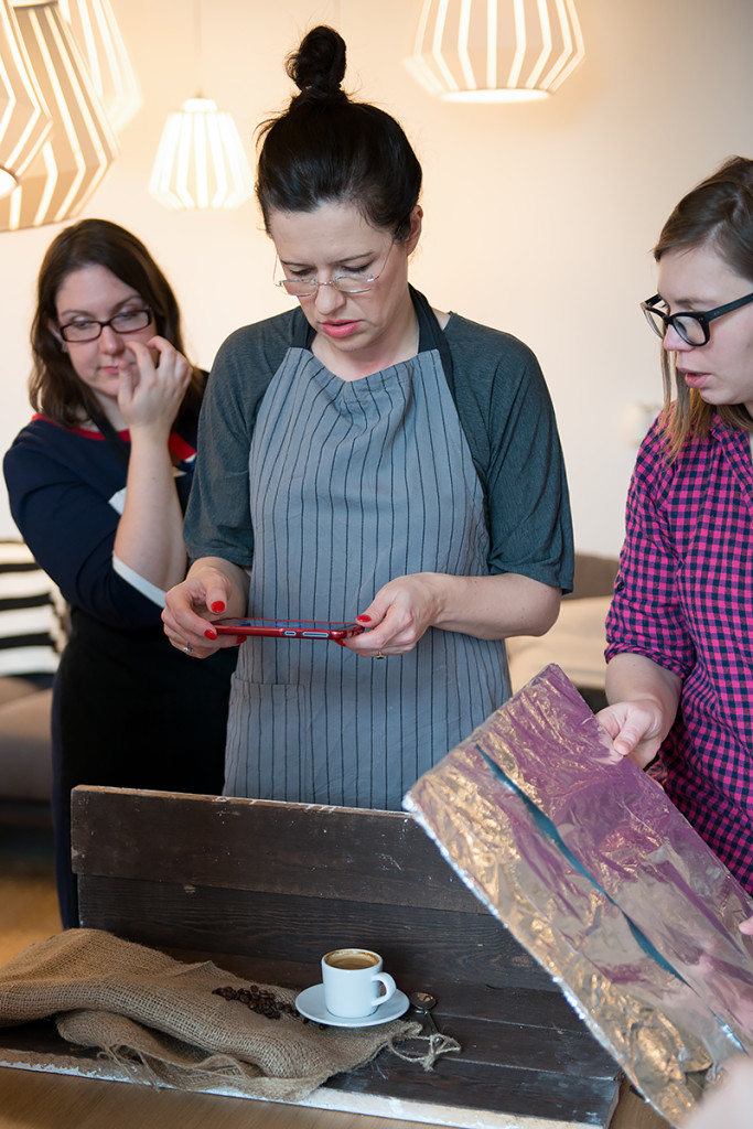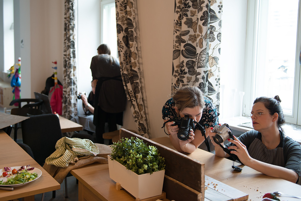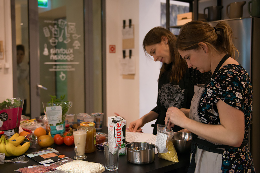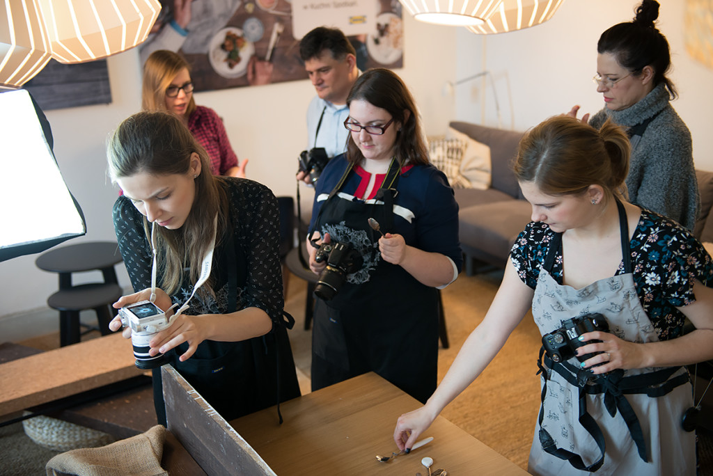Mama Trójki przygotowała dla nas fajne i łatwe przepisy, ale o tym co przygotowała przeczytacie pewnie u niej na blogu. Ja natomiast zajęłam się pomocą fotograficzną, pomagałam zrozumieć podstawy fotografii kulinarnej. Zgłębialiśmy kwestię oświetlenia, kompozycji, balansu bieli, stylizacji potraw, a także opowiadałam o akcesoriach do fotografii kulinarnej. Jednym słowem skondensowałam w kilku godzinach to co istotne w fotografii kulinarnej.