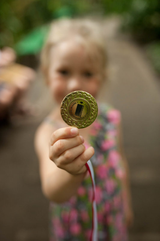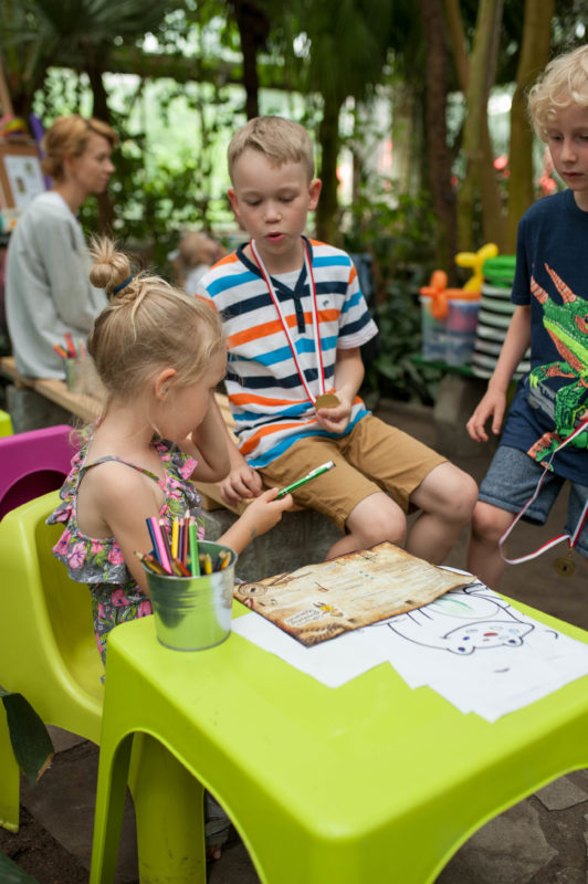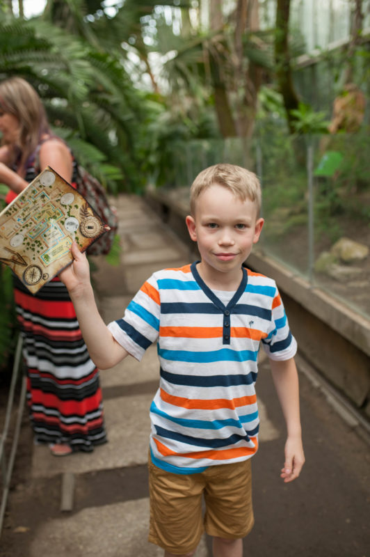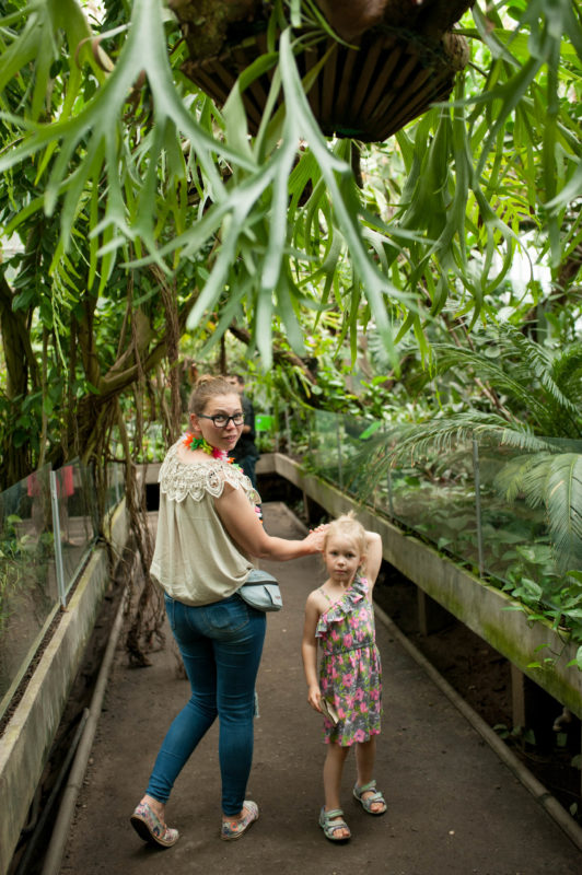 - Pamiarnia – to przepiękne miejsce w którym możemy zobaczyć jak rośnie kakaowiec, kawa, pomarańcze czy wiele innych roślin. To wspaniała lekcja biologii dla naszych dzieci, choć tak naprawdę nasze pociechy miały nieco inny plan na zwiedzanie. A mianowicie po wejściu do palmiarni, dzieci otrzymały mapy, na których widniało 6 punktów. W każdym z punktów trzeba było odszukać pieczątkę i przybić ja na mapie. Po zebraniu wszystkich pieczątek wykupowało się medal dla naszych małych botaników. I tak biegaliśmy od punktu do punktu aby zdobyć pieczątki i wymarzony medal. A rośliny, no cóż nadal tam rosną i maja się dobrze, a medale zdobią nasze ściany.