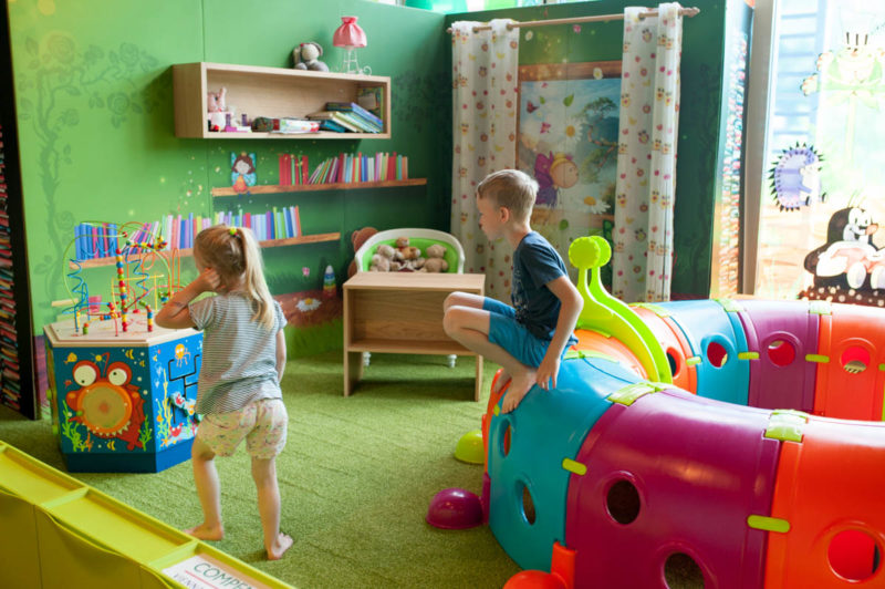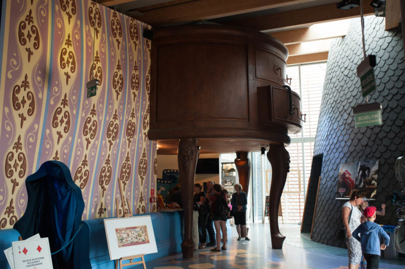 Już po przekroczeniu progu poczuliśmy bajkową atmosferę. Tuż nad kasami znajduję się ogromna komoda, która wzbudza dziecięce zainteresowanie, na ścianach piękne królewskie ornamenty i dla spostrzegawczych ukryte elementy z bajek.