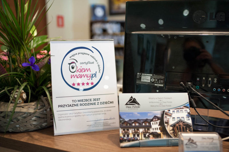 Hotel 2 Potoki sprawdziliśmy z każdej możliwej strony i naprawdę to miejsce zasługuję na polecenia i Certyfikat OkiemMamy, dlatego z dumą wręczyliśmy nasz dyplom oraz naklejki.