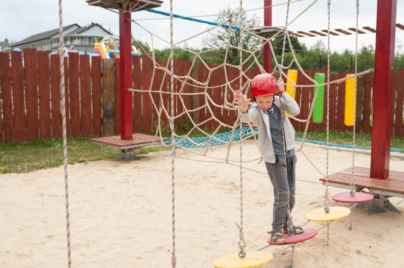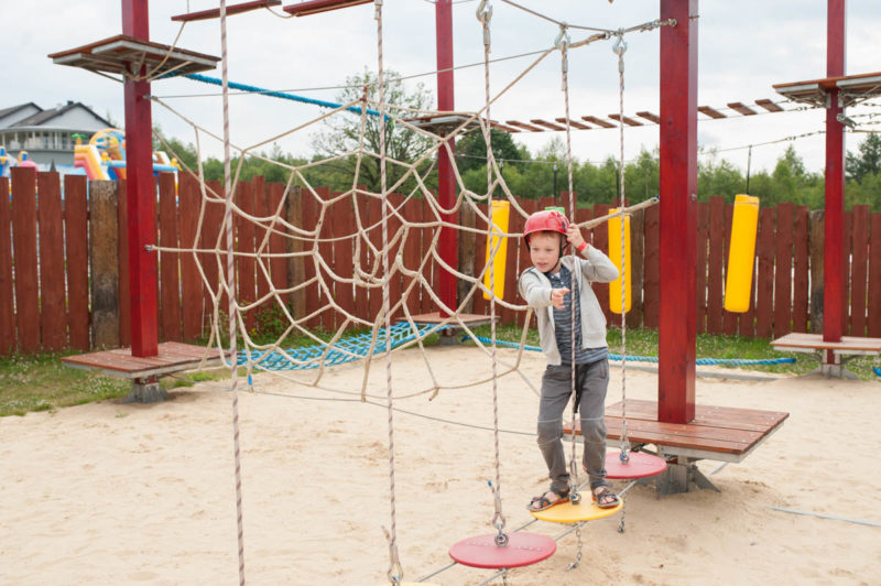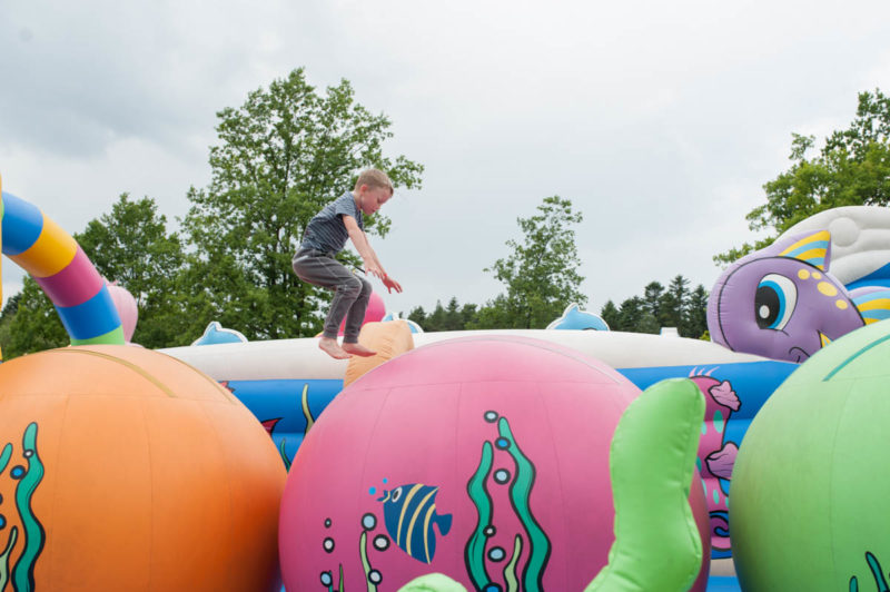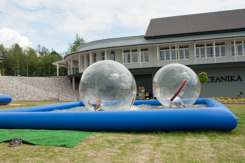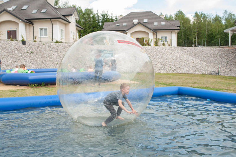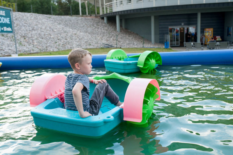 Zaraz po zameldowaniu udaliśmy się do krainy zabawy, gdzie dzieci mogły oddać się beztroskiej zabawie. I tu moje dzieci po prostu przepadły. Szaleństwu nie było końca, skoki na 8 metrowym eurobungee, zabawa na dmuchańcach, park linowy, brzozowa zagroda ze zwierzętami, pływanie łódeczkami czy bieganie po wodzie w zamkniętej kuli. To atrakcje które uwielbiają chyba wszystkie dzieci.