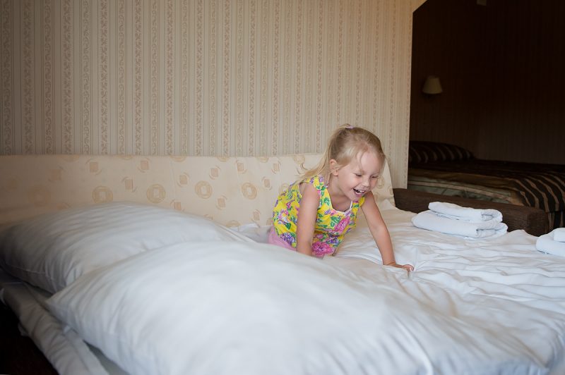 Otrzymaliśmy pokój na pierwszym piętrze, gdyż na dole mieściła się restauracja i sala zabaw. Nasz pokój był duży i przestronny. Duże małżeńskie łóżko wraz z dodatkowym łóżkiem dla dzieci gdzie maluchy swobodnie mogły się wyspać. Do tego jasna i czysta łazienka i możemy się zadomowić.