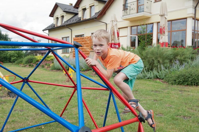 Obok hotelu jest wydzielona część na plac zabaw dla dzieci, gdzie znajduję się huśtawka, zjeżdżalnia, bujaki, ścianka do wspinaczki i coś czego nie umiem nazwać, ale dzieci lubiły się na to wspinać i wisieć od środka jak leniwce. My rodzice mogliśmy podglądać beztroską zabawę naszych dzieci z tarasu restauracyjnego lub korzystając z leżaczków zaraz przy placu zabaw. Ja oczywiście wybierałam opcję tarasu gdzie zajadałam wyśmienity deser popijając kawą.