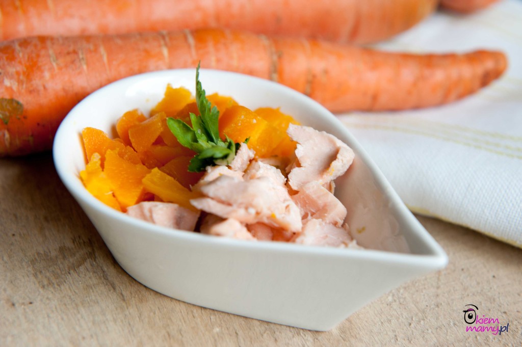 Obieramy i myjemy marchew i pietruszkę. Kroimy w kostkę i gotujemy w małej ilości wody. Około 15-20 min, aż warzywa będą miękkie.